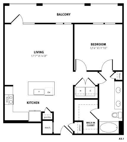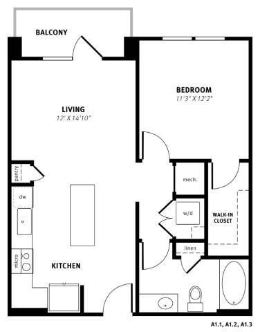 Estudio, 1 Baño, 665 pies²Galería del Modelo