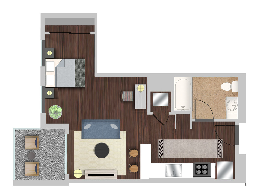 Estudio, 1 Baño, 465 pies²Disponible AhoraGalería del Modelo