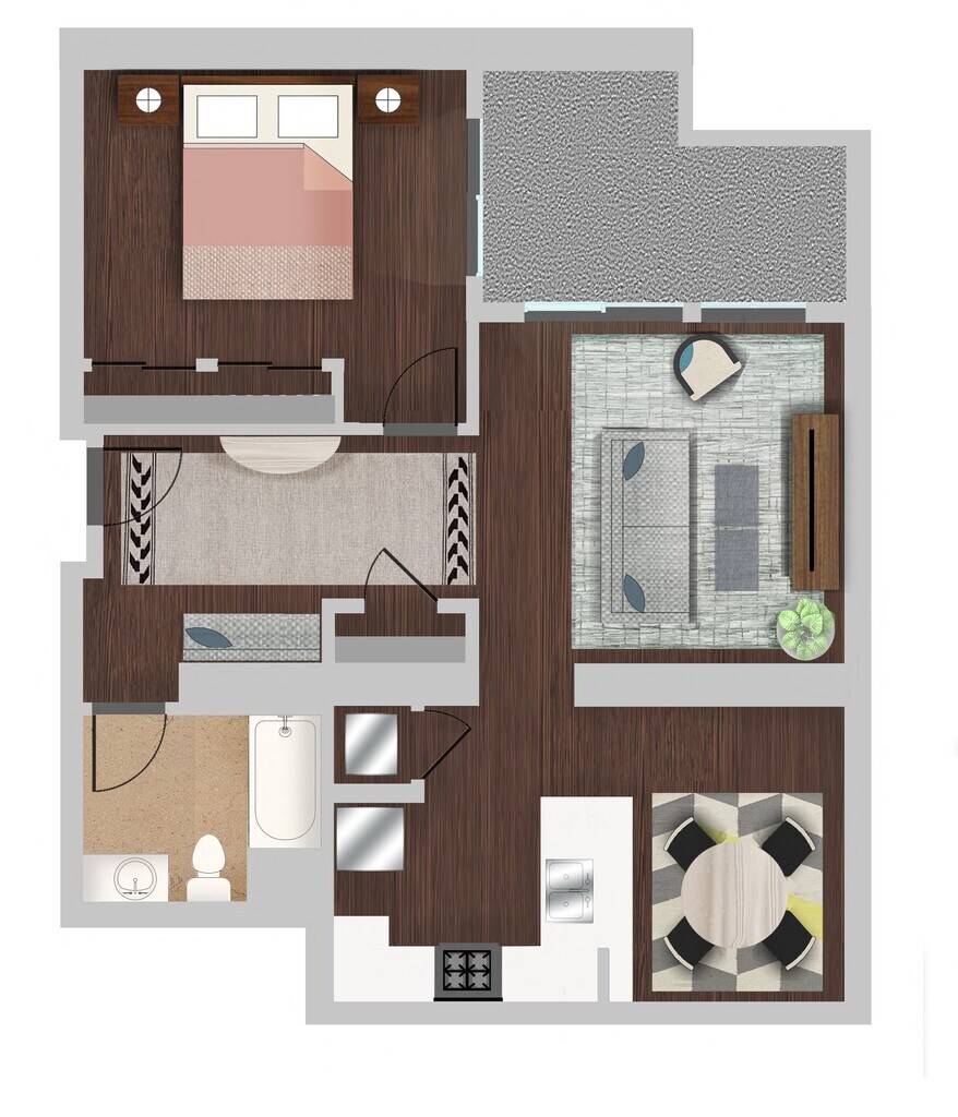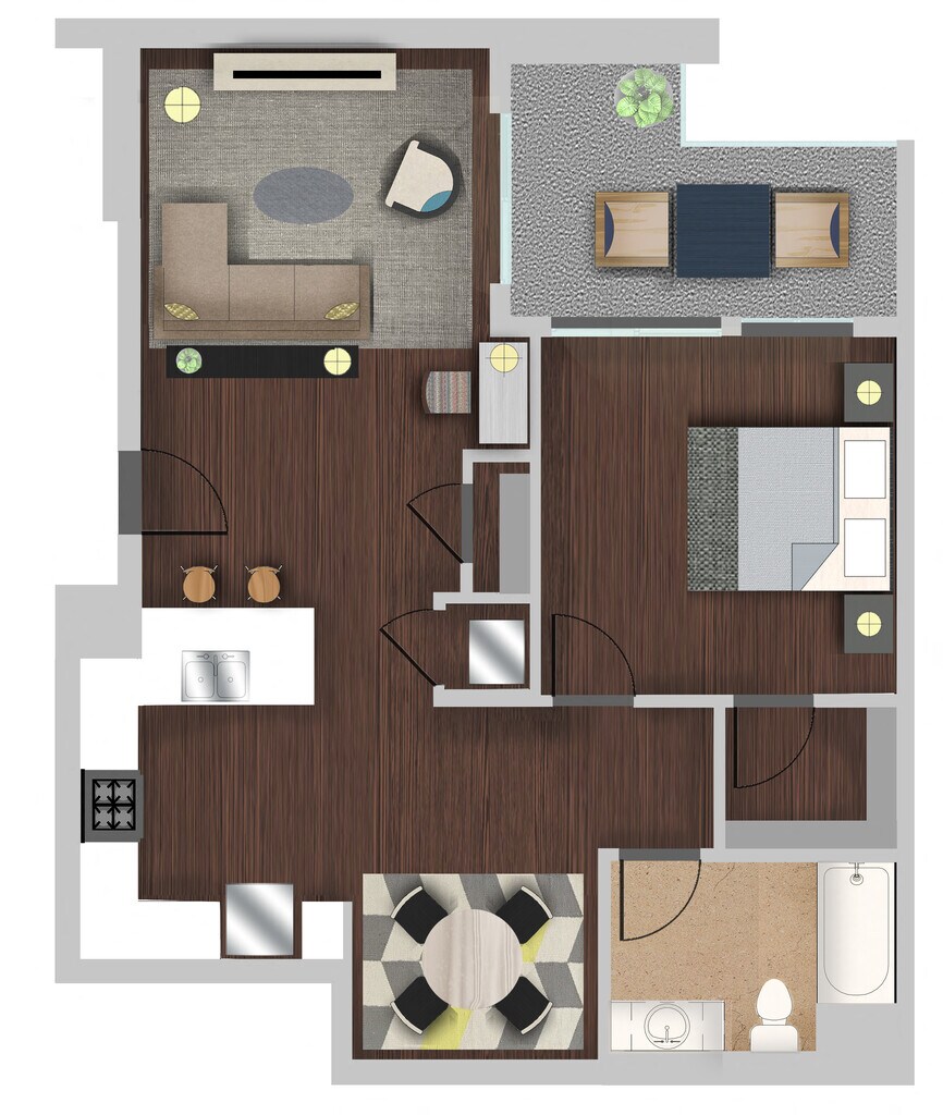 Efficiency 7 - Plano 1 Unidad de apartamento: 0230Modelo de apartamento: Efficiency 7$1,979Estudio, 1 Baño, 474 sq ftDisponible AhoraEfficiency 2