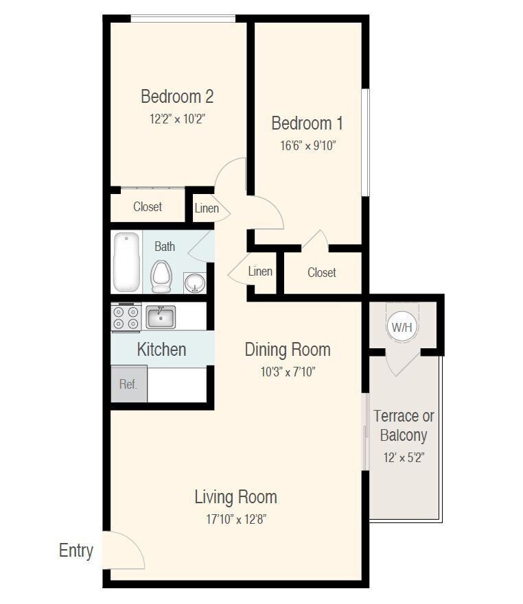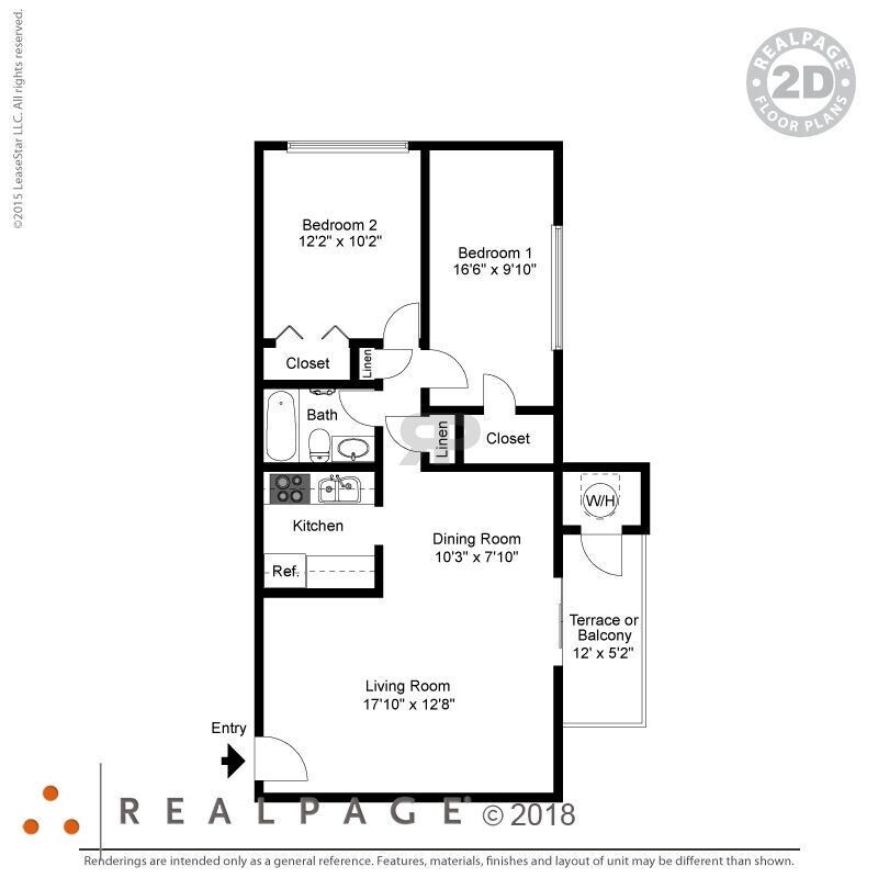 Modelo de apartamento: 2 Bedroom2 Dormitorios, 1 Baño, 725-825 sq ftDisponible December 3, 2025![]()