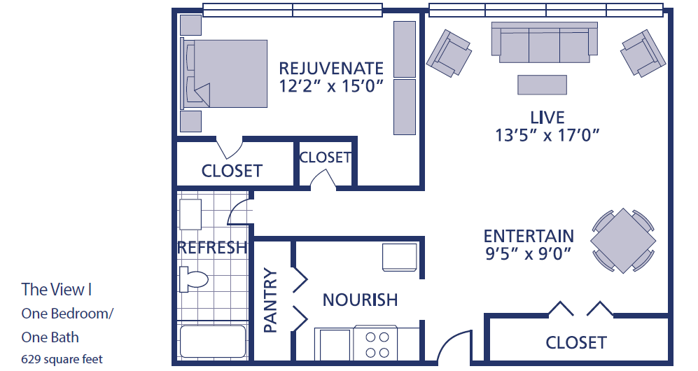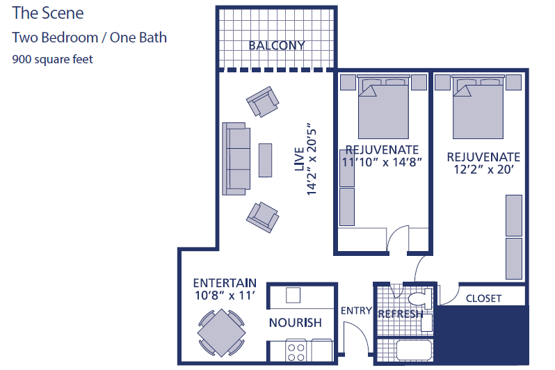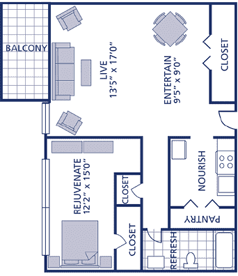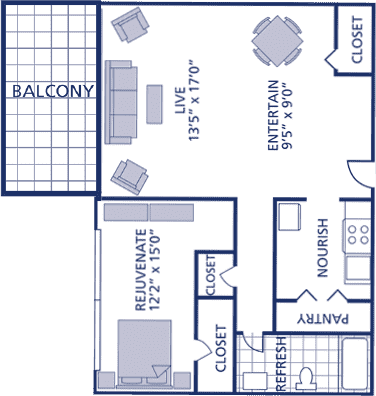 Ver Planos No DisponiblesOne Bed One Bath Medium with Balcony