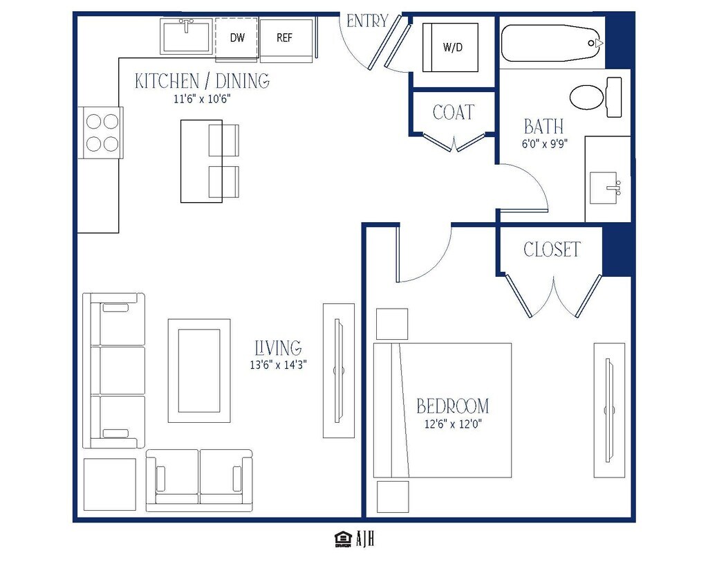 Unidad de apartamento: L02Modelo de apartamento: The Apex$1,7501 Dormitorio, 1 Baño, 575 sq ftDisponible AhoraThe Zenith