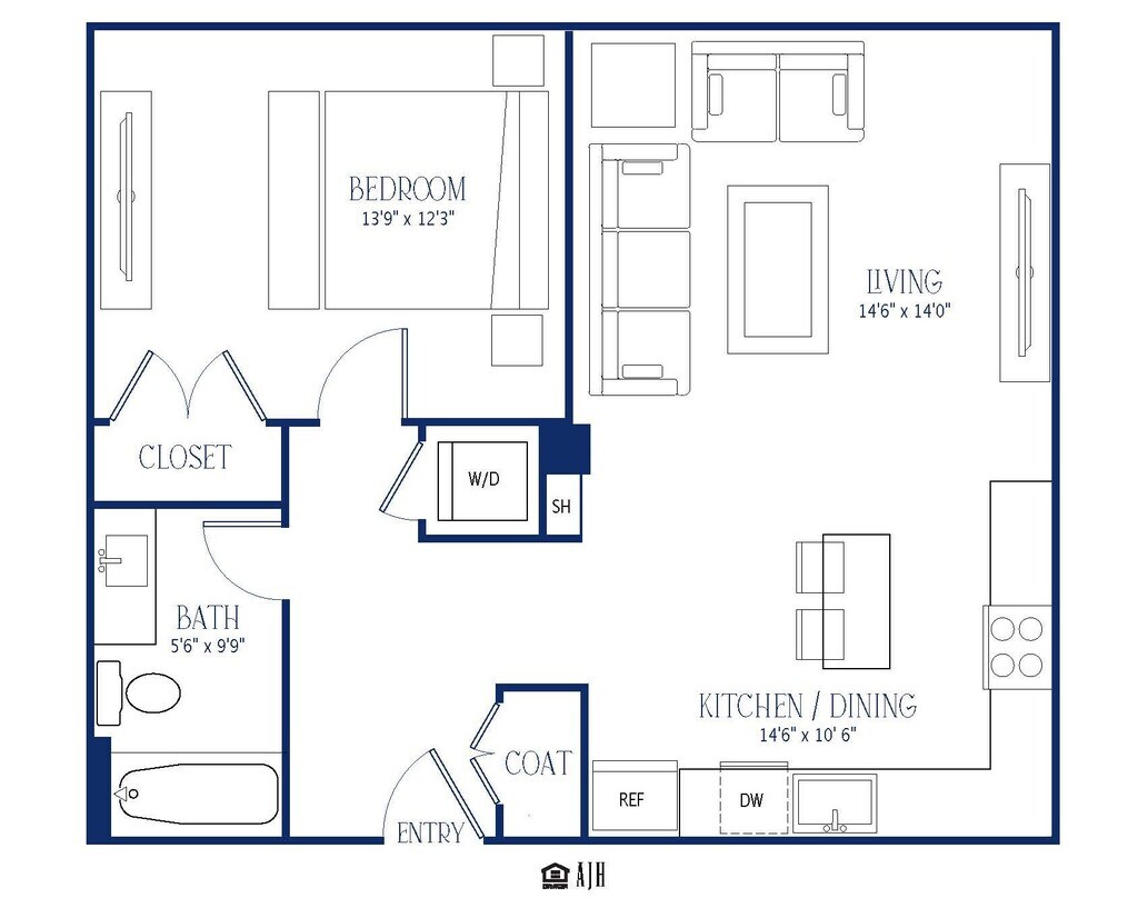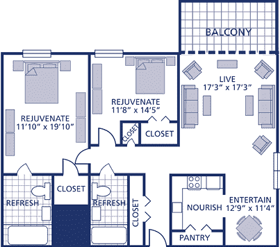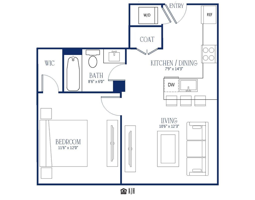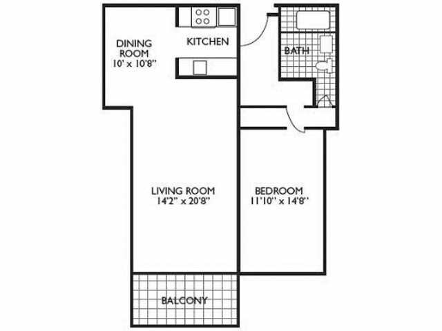Modelo de apartamento: One Bed One Bath Medium with BalconyDesde $1,3951 Dormitorio, 1 Baño, 632 sq ftDisponible Ahora![]()