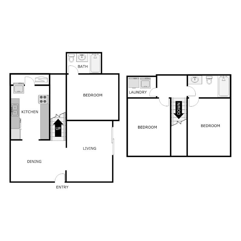 Modelo de apartamento: 2 Bed 1.5 BathDesde $6382 Dormitorios, 1.5 Baños, 1070 sq ftNo Disponible![]()