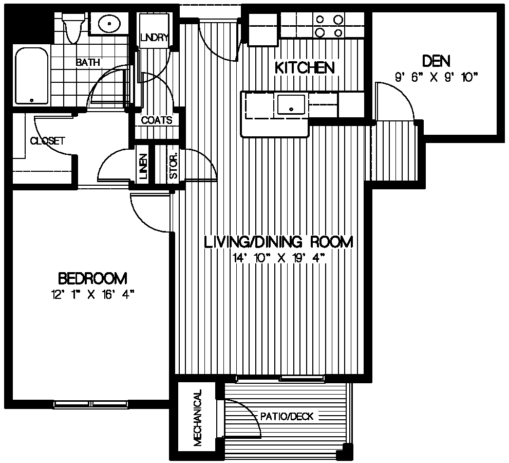 1 Dormitorio, 1 Baño, 907 pies²El más grandeEsta opción tiene las unidades más grandes para este modeloGalería del Modelo