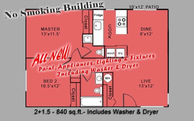 2 Dormitorios, 1.5 Baños, 840 pies²Detalles de Diponibilidad