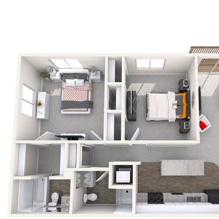2 Dormitorios, 2 Baños, 1000 pies²Galería del Modelo