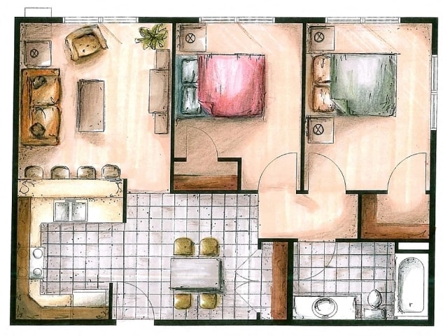 Modelo de apartamento: Two Bedroom Two BathroomDesde $1,0002 Dormitorios, 2 Baños, 820 sq ftDisponible June 22, 2026![]()
