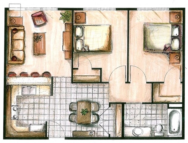 Two Bedroom Two Bathroom - Plano 2 ![]()