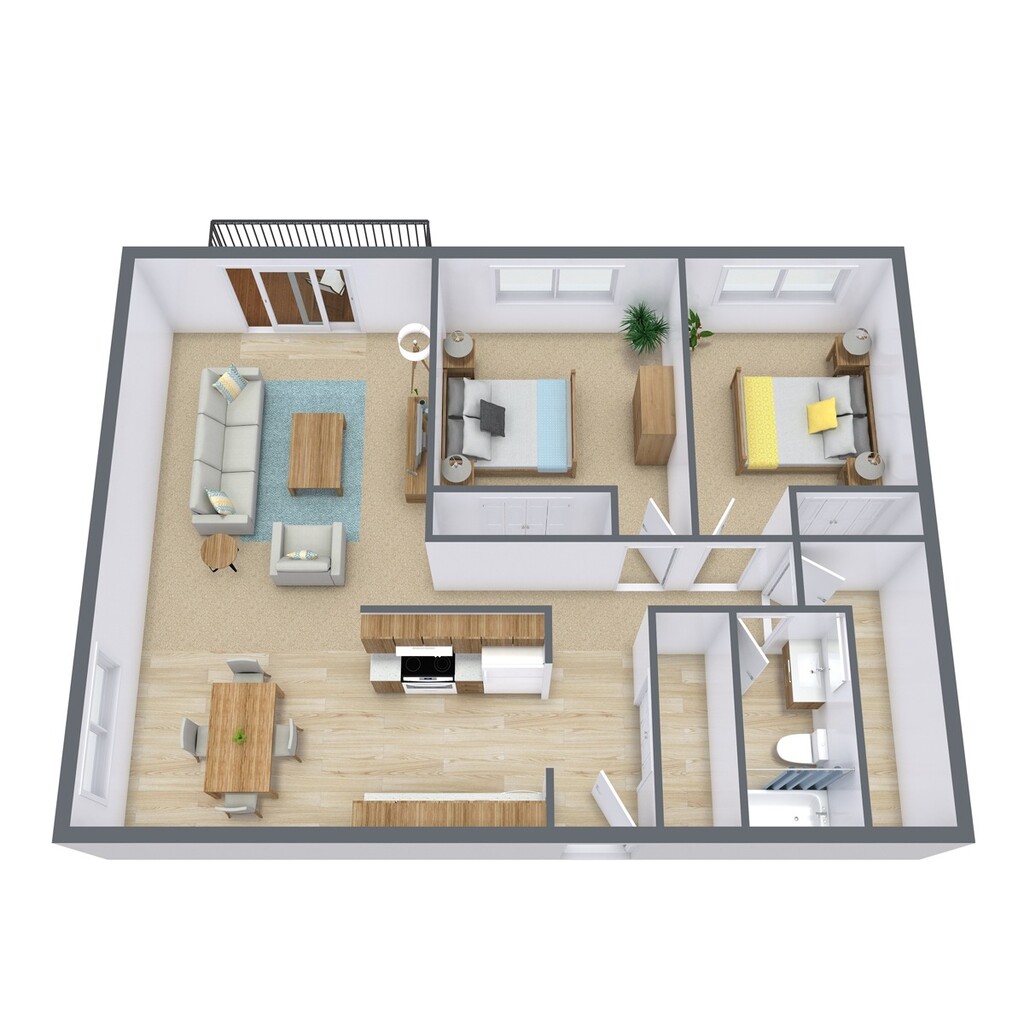 Modelo de apartamento: Two Bedroom 21A2 Dormitorios, 1 Baño, 875 sq ftDisponible Ahora![]()