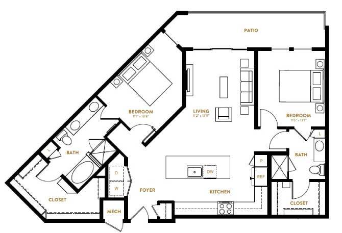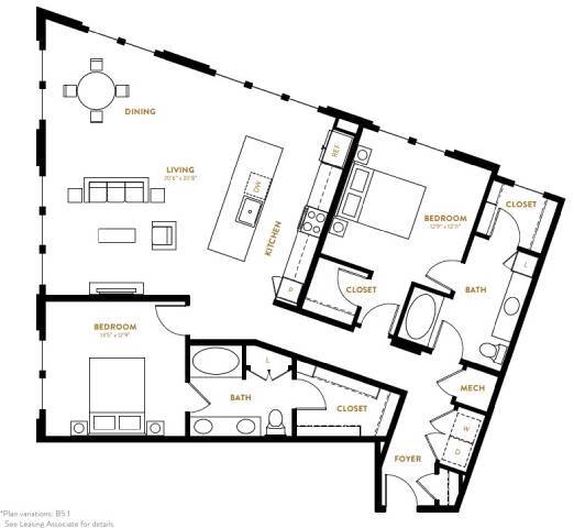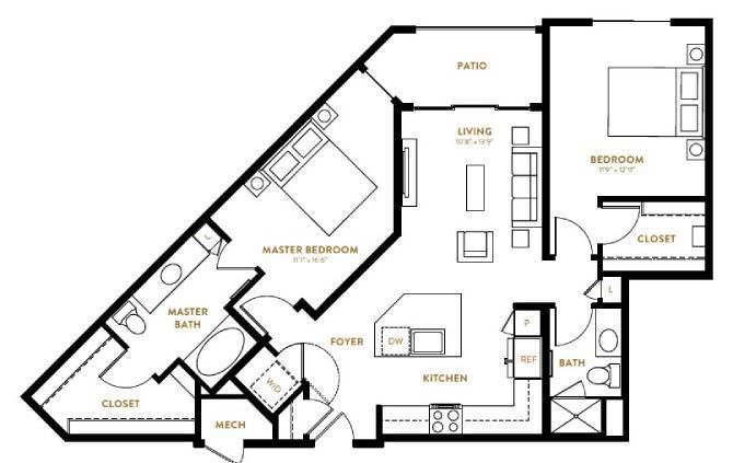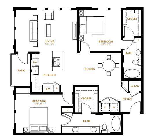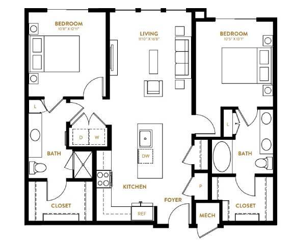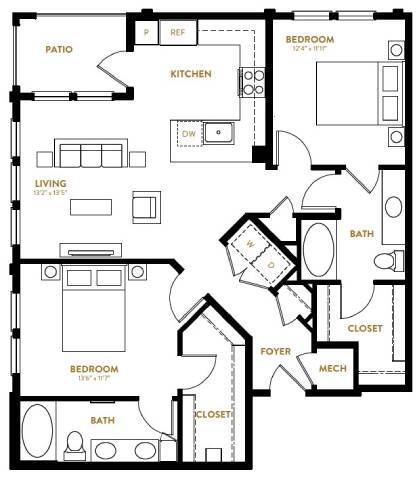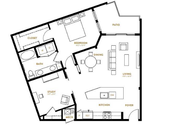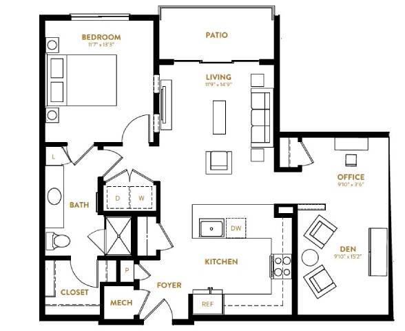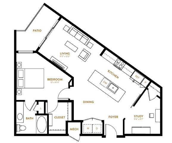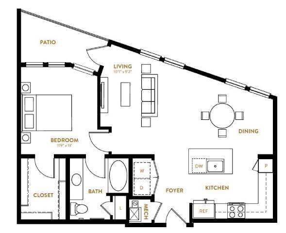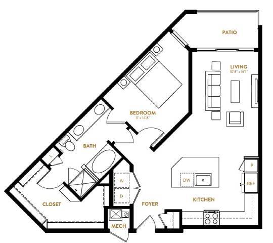 Modelo de apartamento: A4Desde $1,6871 Dormitorio, 1 Baño, 745-775 sq ftDisponible Ahora![]()