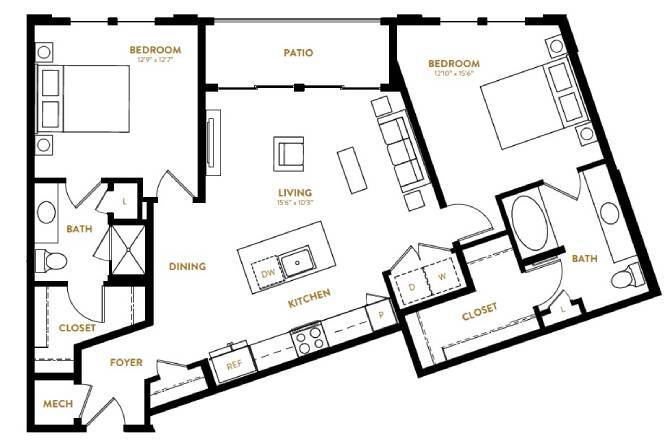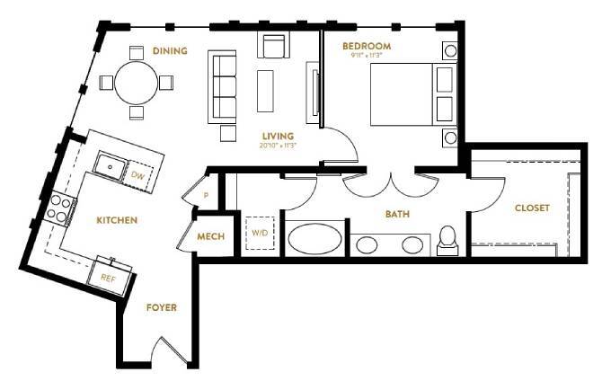 1 Dormitorio, 1 Baño, 745-775 pies²Disponible AhoraGalería del Modelo