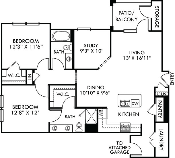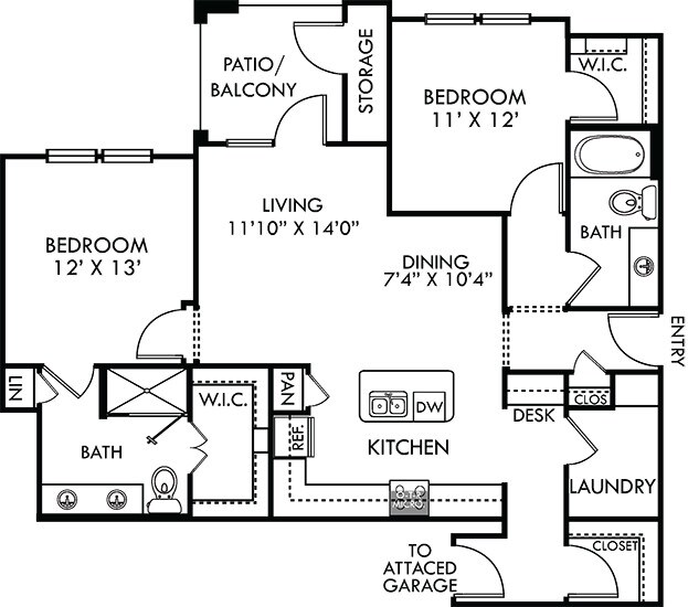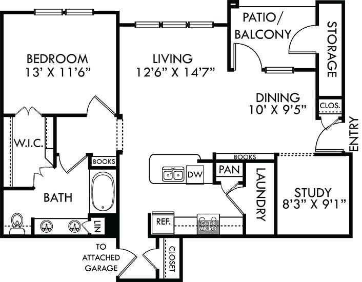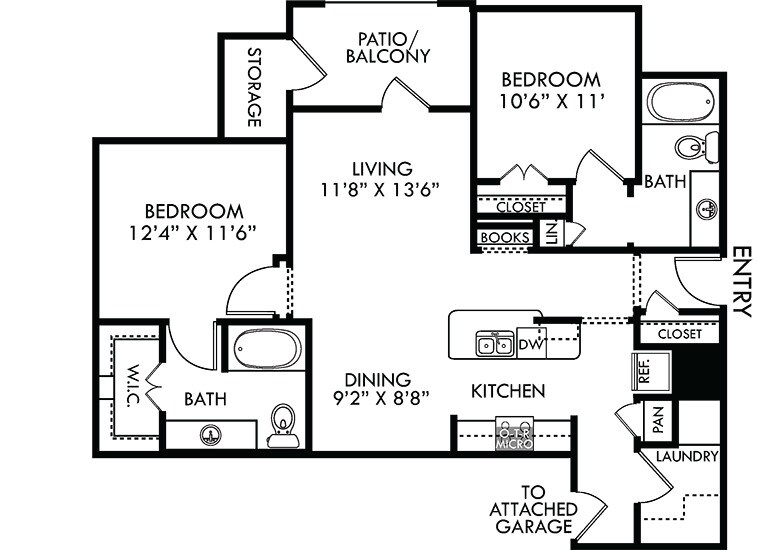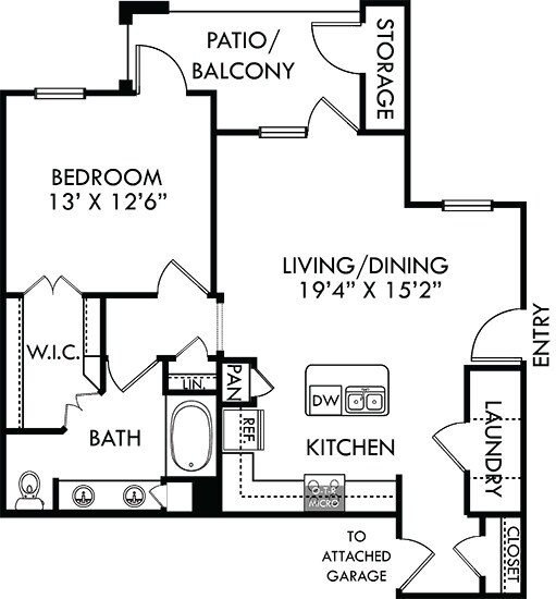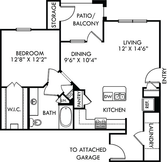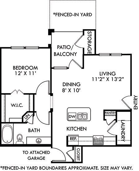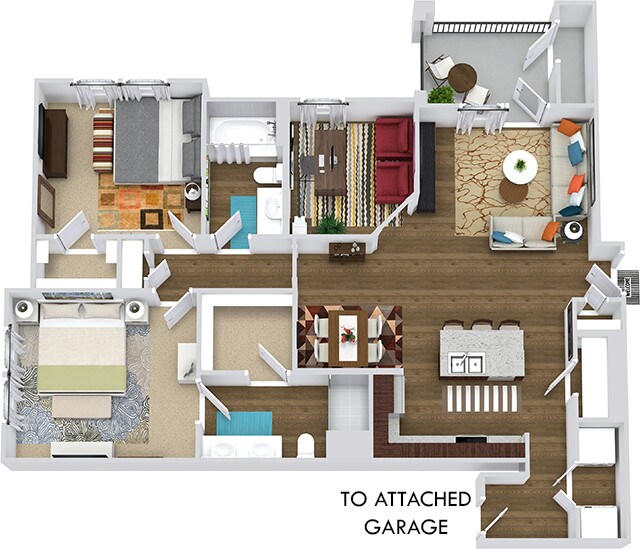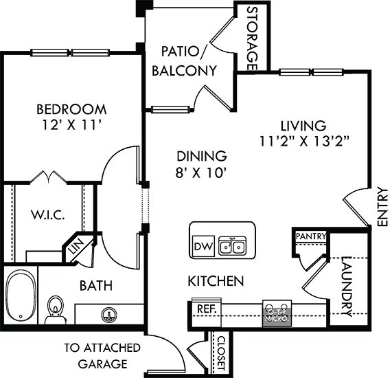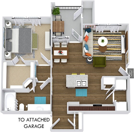 Modelo de apartamento: Sedona with Attached GarageDesde $1,4091 Dormitorio, 1 Baño, 650 sq ftDisponible Ahora![]()