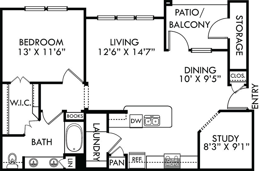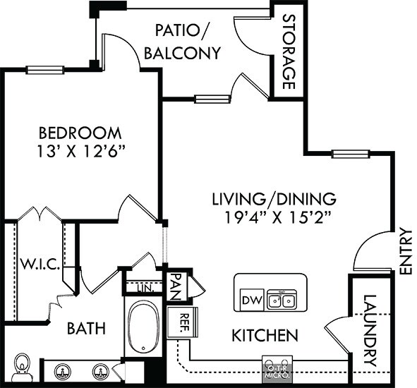 1 Dormitorio, 1 Baño, 650 pies²Disponible AhoraGalería del Modelo