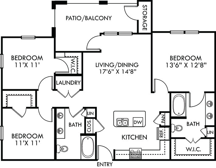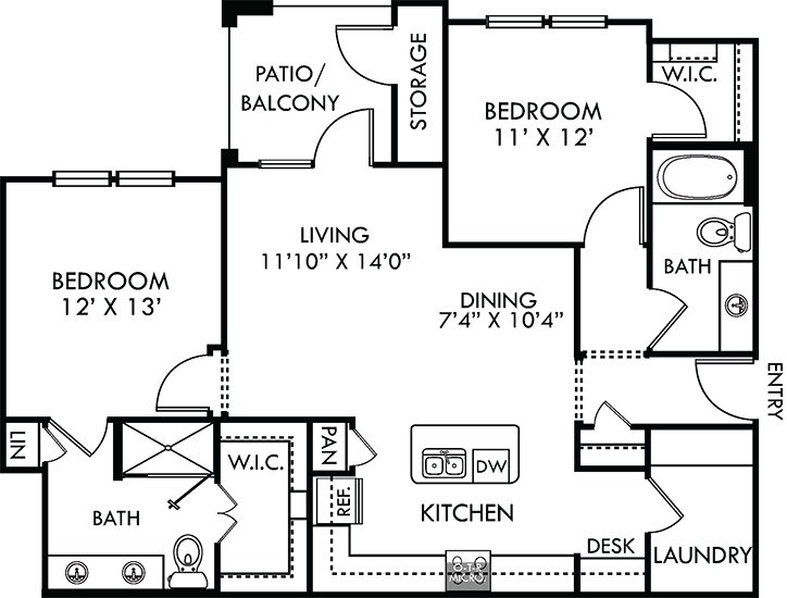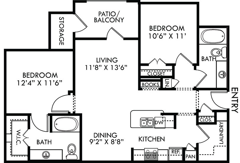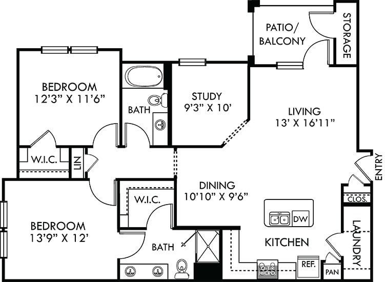 Modelo de apartamento: SycamoreDesde $1,2991 Dormitorio, 1 Baño, 820 sq ftDisponible Ahora![]()