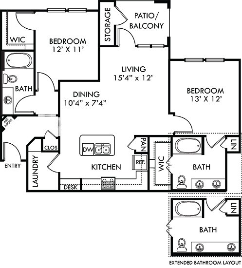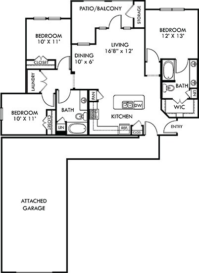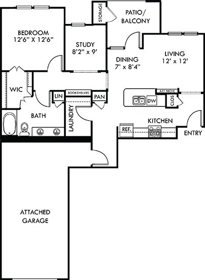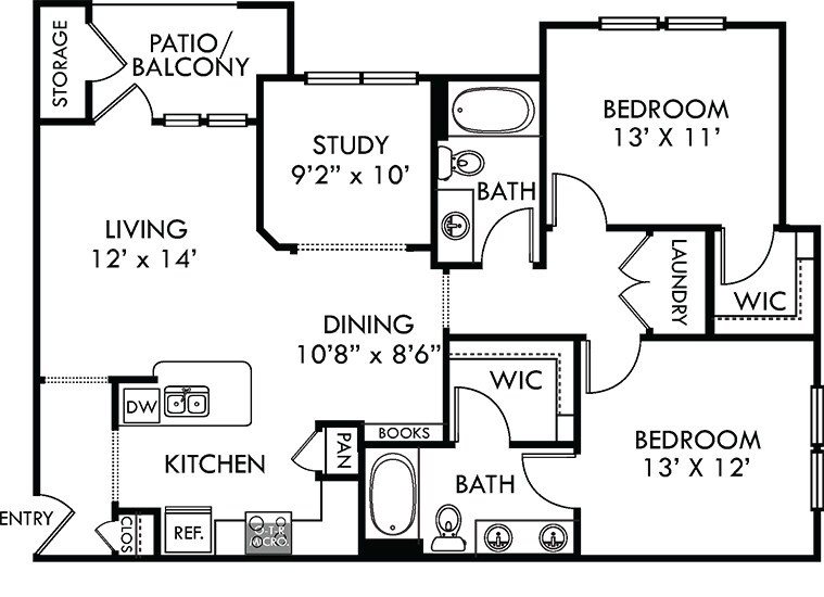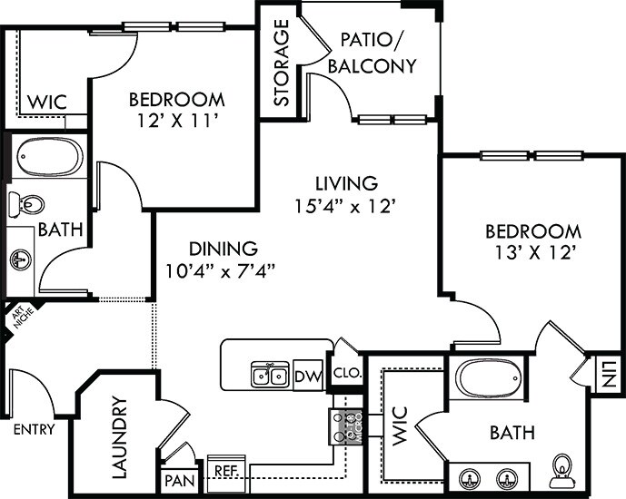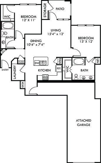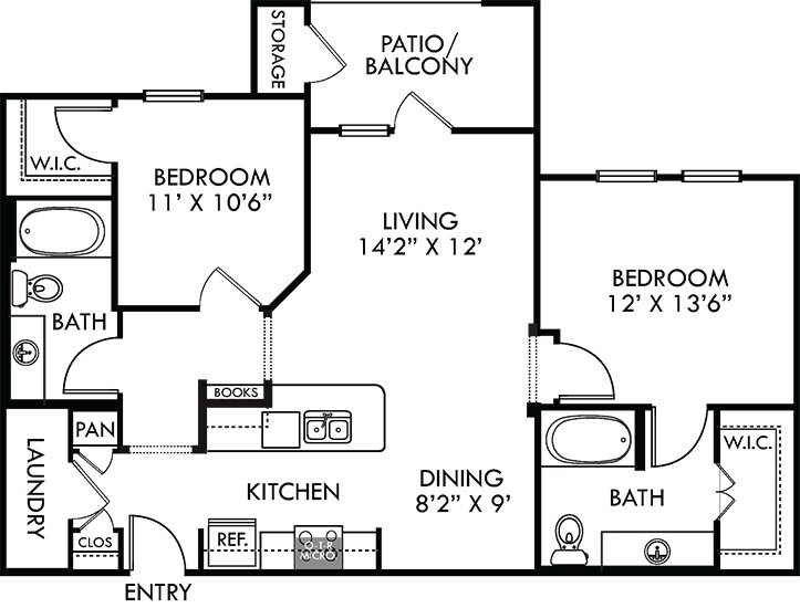 Modelo de apartamento: NuecesDesde $1,4591 Dormitorio, 1 Baño, 725 sq ftDisponible Ahora![]()