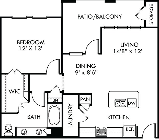 1 Dormitorio, 1 Baño, 725 pies²Disponible AhoraGalería del Modelo