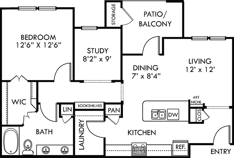 Nueces - Plano 2 Unidad de apartamento: 313Modelo de apartamento: Nueces$1,4591 Dormitorio, 1 Baño, 725 sq ftDisponible AhoraBlanco