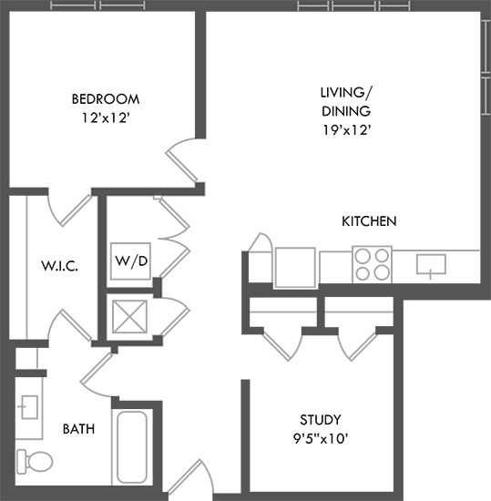 Estudio, 1 Baño, 575 pies²Disponible AhoraGalería del Modelo