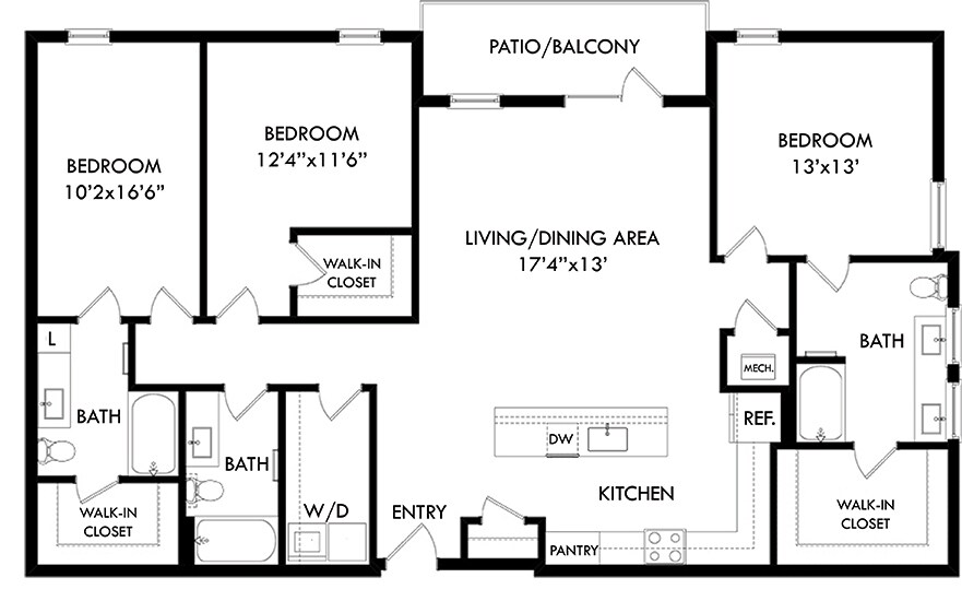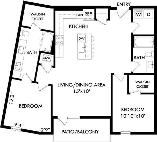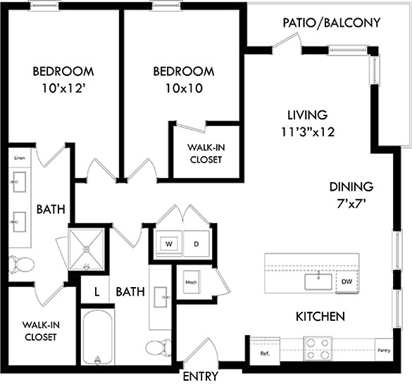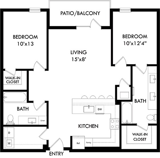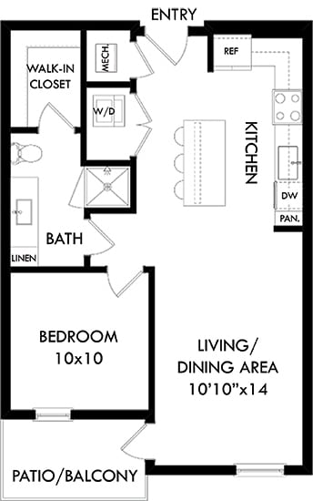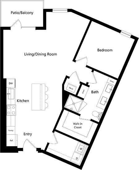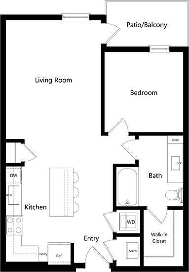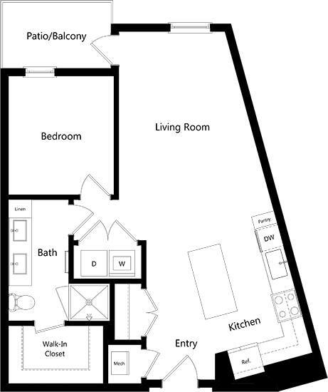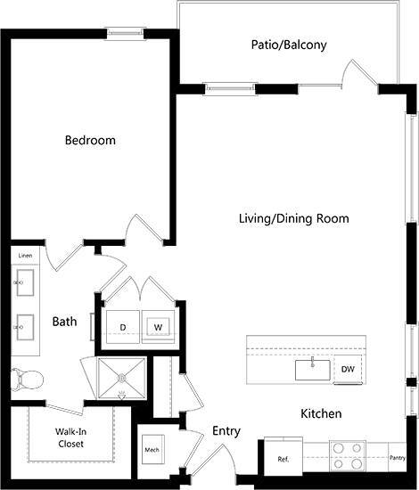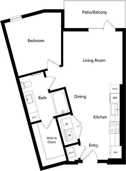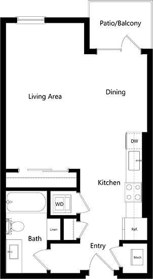 Modelo de apartamento: ButlerLlame para PreciosEstudio, 1 Baño, 571 sq ftNo Disponible![]()