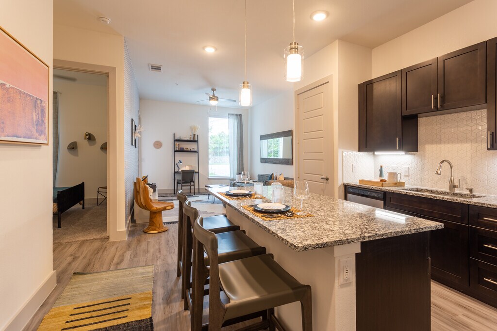 Nuestros apartamentos mejor calificados en Austin, TX, cuentan con amplios y luminosos estudios, apartamentos de una, dos y tres habitaciones con diseños modernos e interiores de ensueño. Bexley SoCo ofrece acceso ideal a todos los ámbitos de la vida, desde la escena empresarial y tecnológica del centro de Austin, hasta los pilares culturales del hogar en South Congress. Con una atmósfera estilo centro turístico en el desierto y comodidades centradas en la tecnología, Bexley SoCo está curando una comunidad social y creativa en el vecindario más envidiado de Austin.