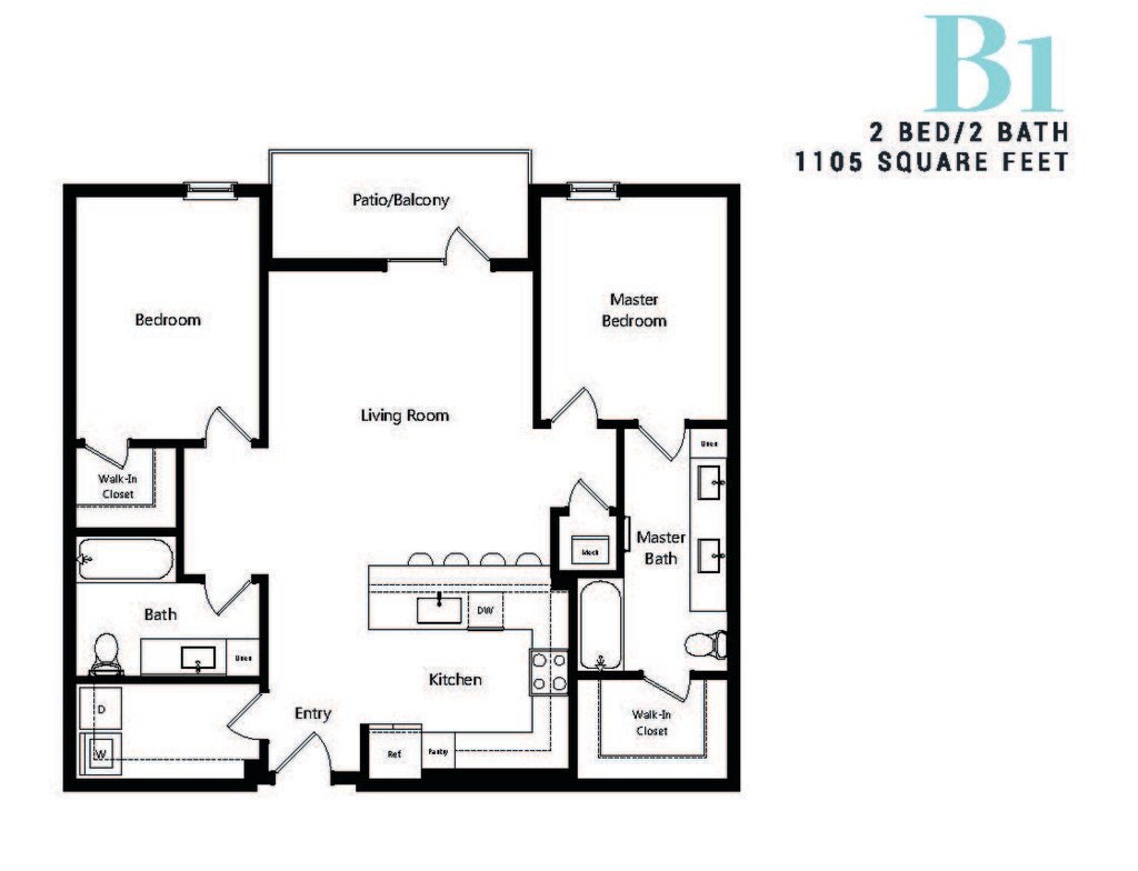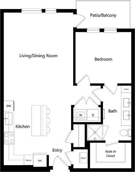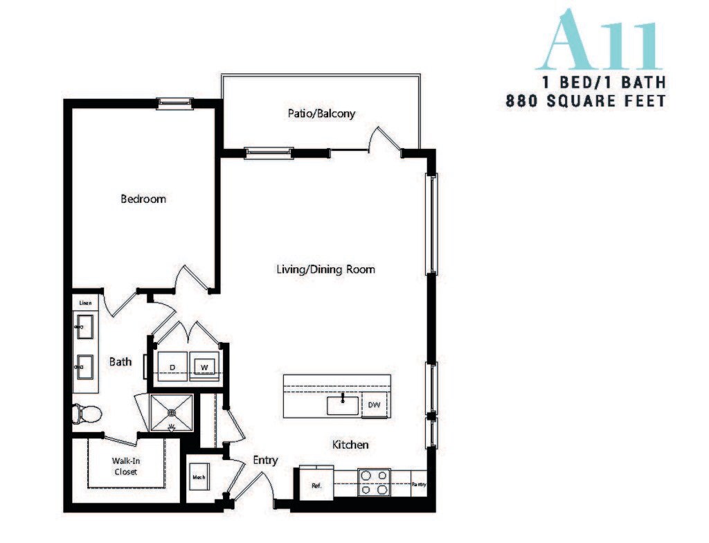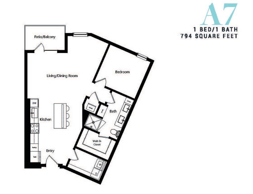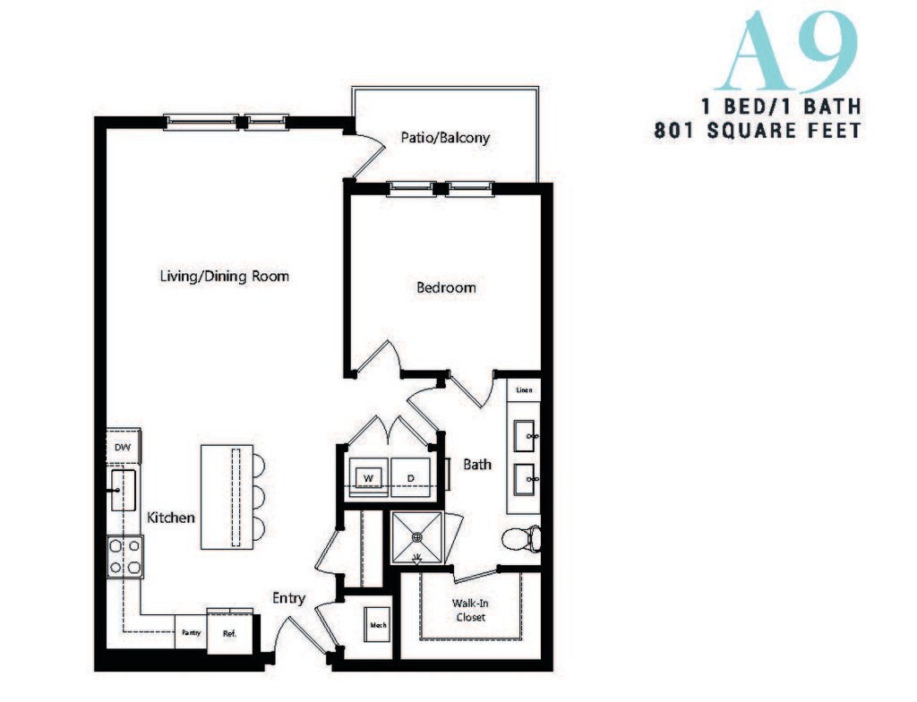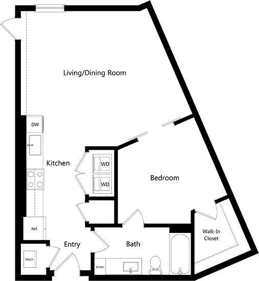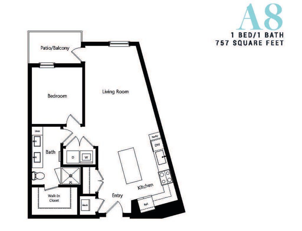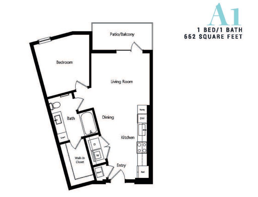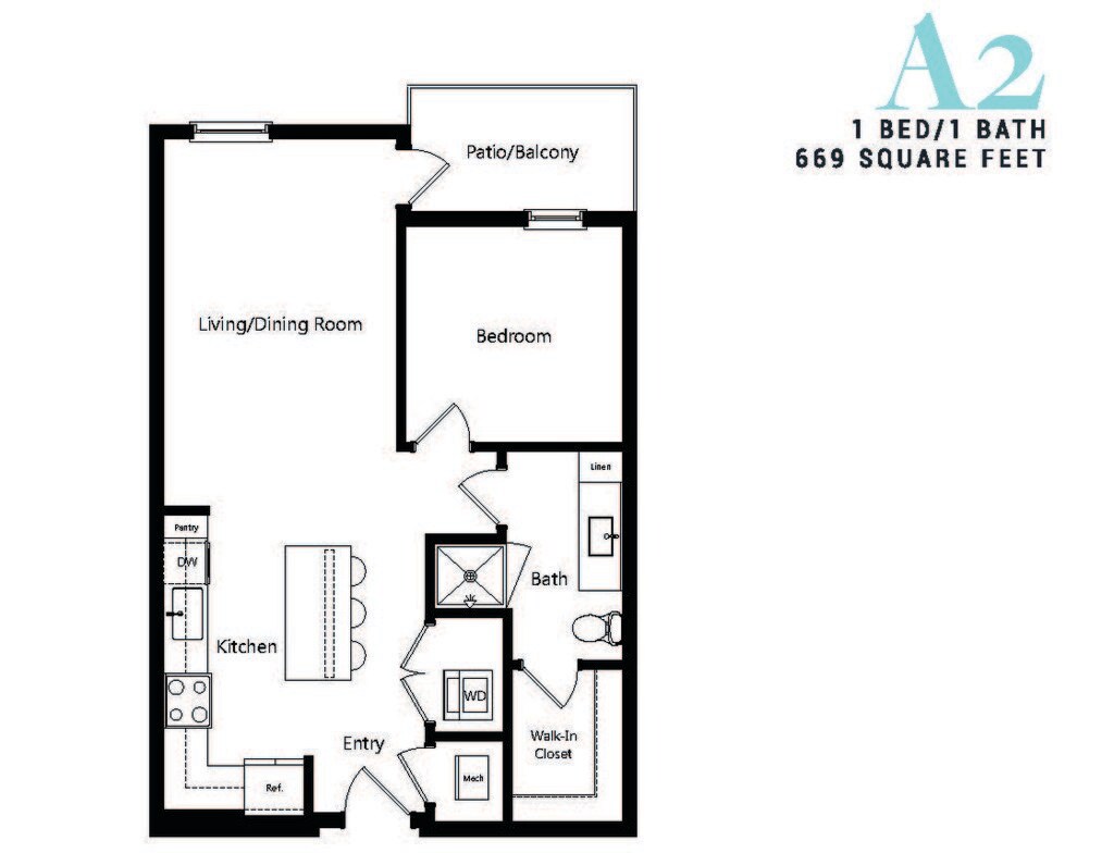 1 Dormitorio, 1 Baño, 669 pies²Disponible AhoraGalería del Modelo