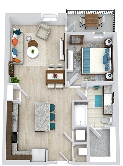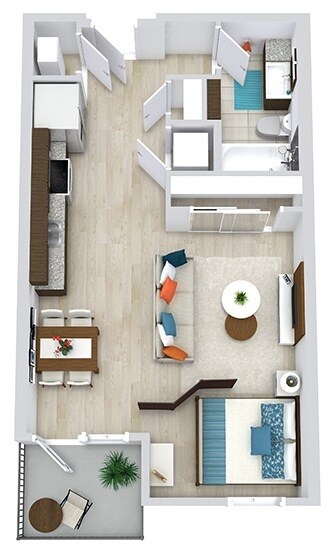 Modelo de apartamento: BartonDesde $1,099Estudio, 1 Baño, 571 sq ftDisponible November 20, 2025![]()