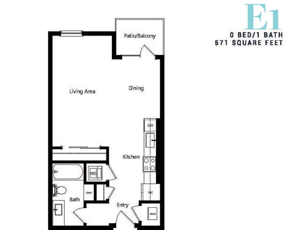 Estudio, 1 Baño, 571 pies²Galería del Modelo