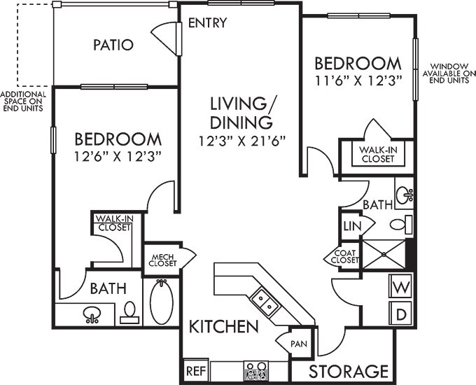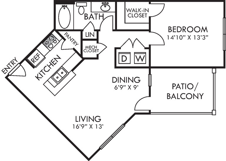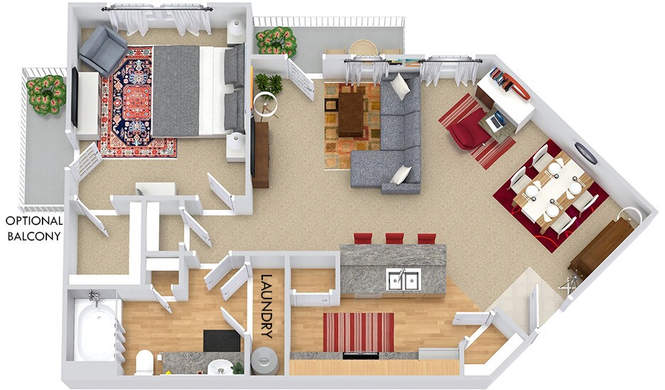 Modelo de apartamento: AbbeyDesde $1,1591 Dormitorio, 1 Baño, 614 sq ftDisponible Ahora![]()