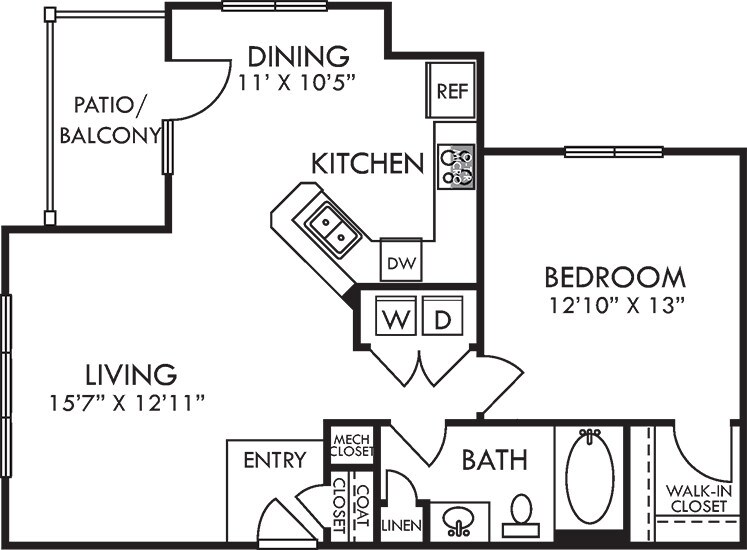 1 Dormitorio, 1 Baño, 761 pies²Disponible February 28, 2026Galería del Modelo