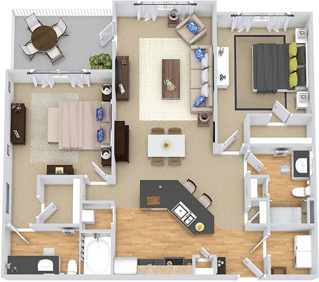 Modelo de apartamento: AshfordDesde $1,2341 Dormitorio, 1 Baño, 761 sq ftDisponible February 28, 2026![]()