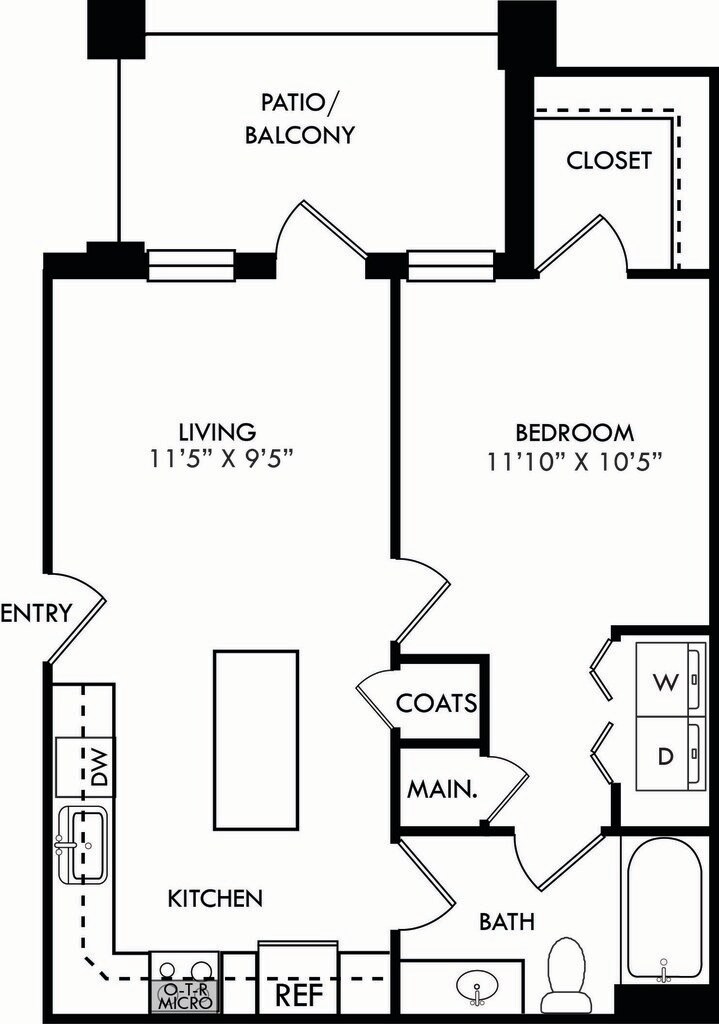 1 Dormitorio, 1 Baño, 840 pies²Disponible Oct 10Galería del Modelo