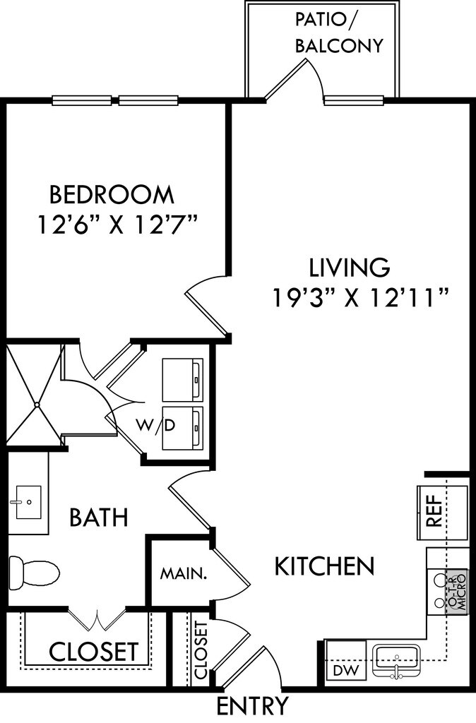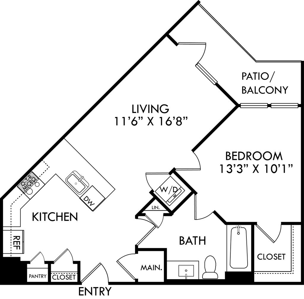 1 Dormitorio, 1 Baño, 800 pies²Disponible AhoraGalería del Modelo