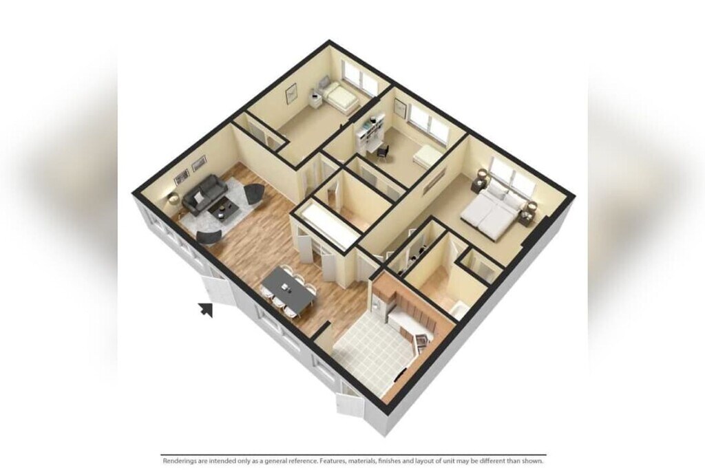 Modelo de apartamento: TBC (3-Bedroom)$2,9953 Dormitorios, 2 Baños, 1150 sq ftDisponible January 1, 2026PlanosFotos![]()