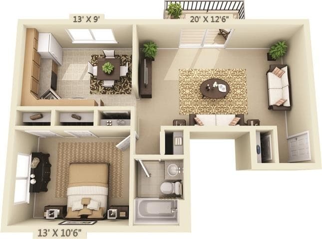 1 Dormitorio, 1 Baño, 663-850 pies²Galería del Modelo