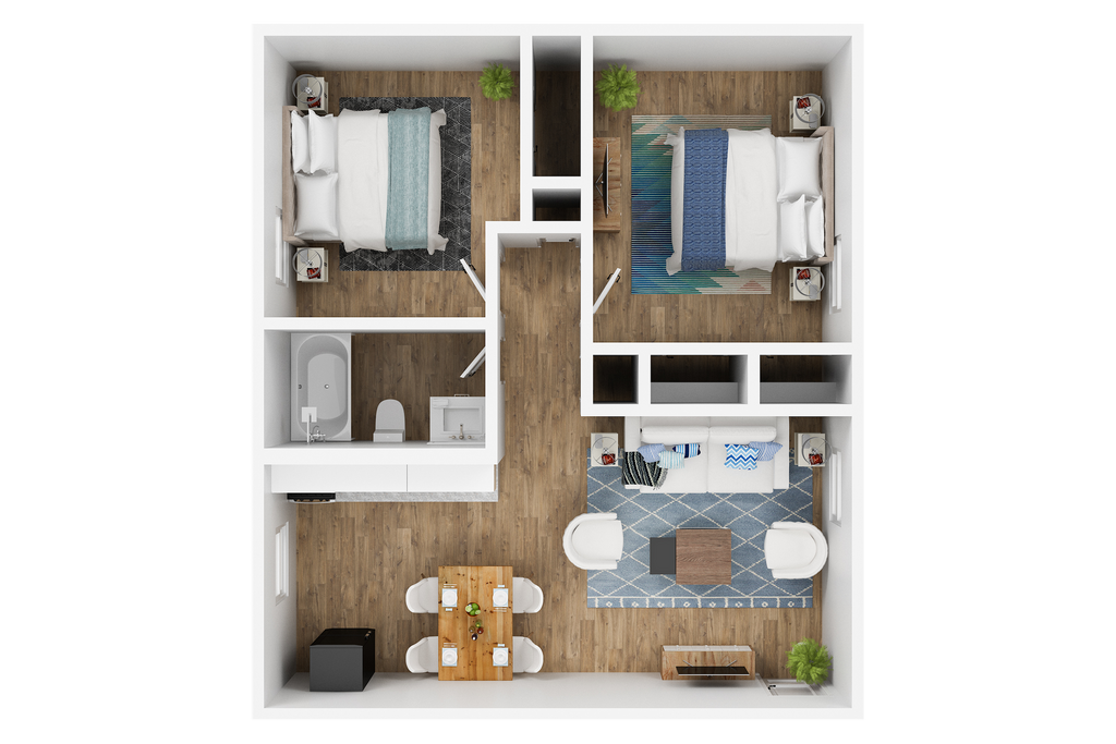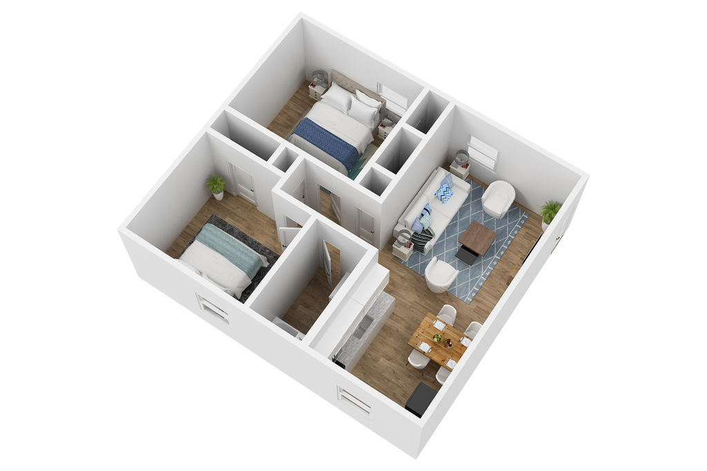 2 Dormitorios, 1 Baño, 980 pies²Disponible AhoraGalería del Modelo