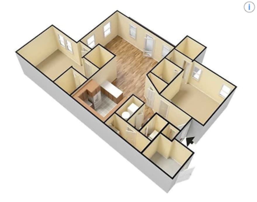 Modelo de apartamento: A1Desde $9901 Dormitorio, 1 Baño, 555 sq ftDisponible Ahora![]()