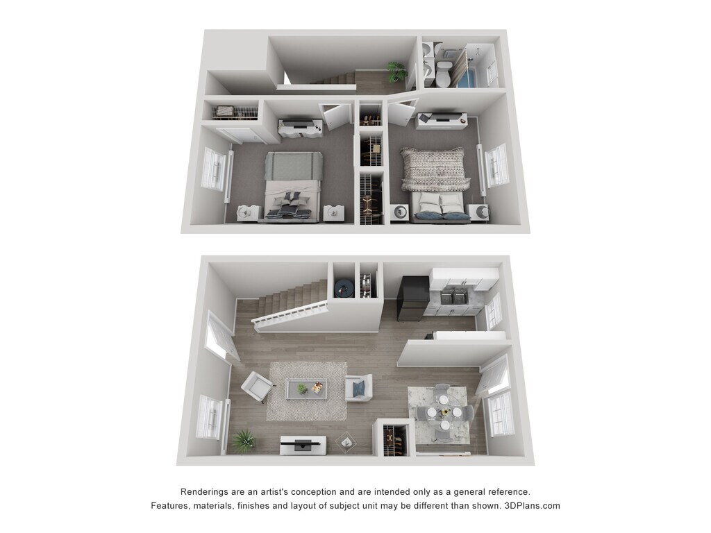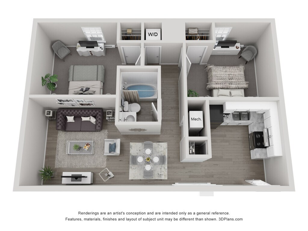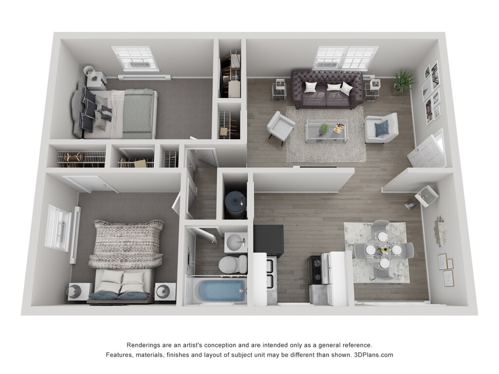 2 Dormitorios, 1 Baño, 980 pies²Disponible AhoraGalería del Modelo