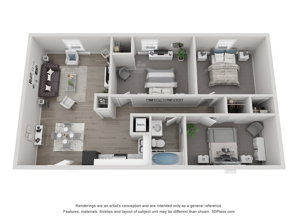 3 Dormitorios, 1 Baño, 1018 pies²Disponible AhoraGalería del Modelo