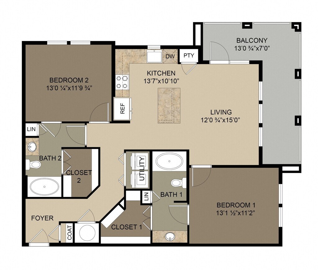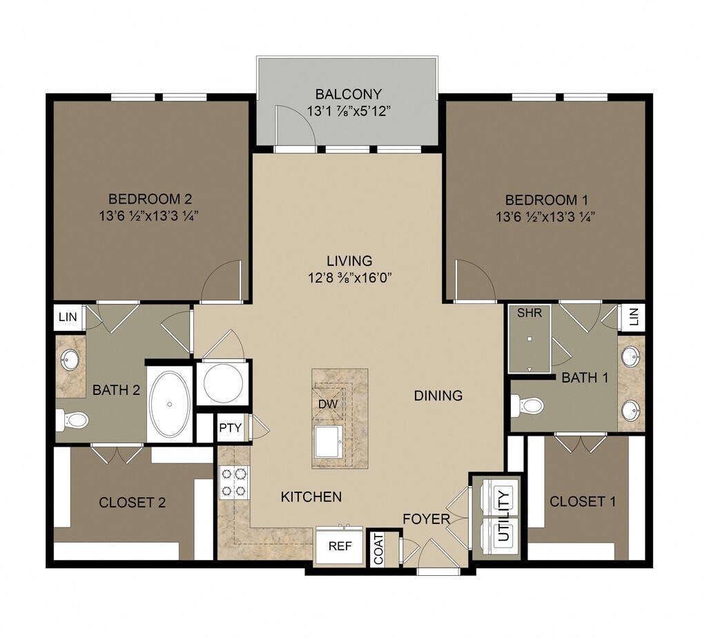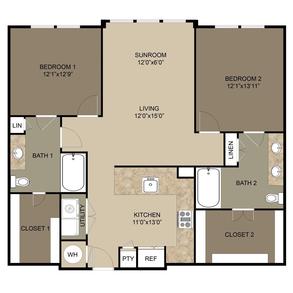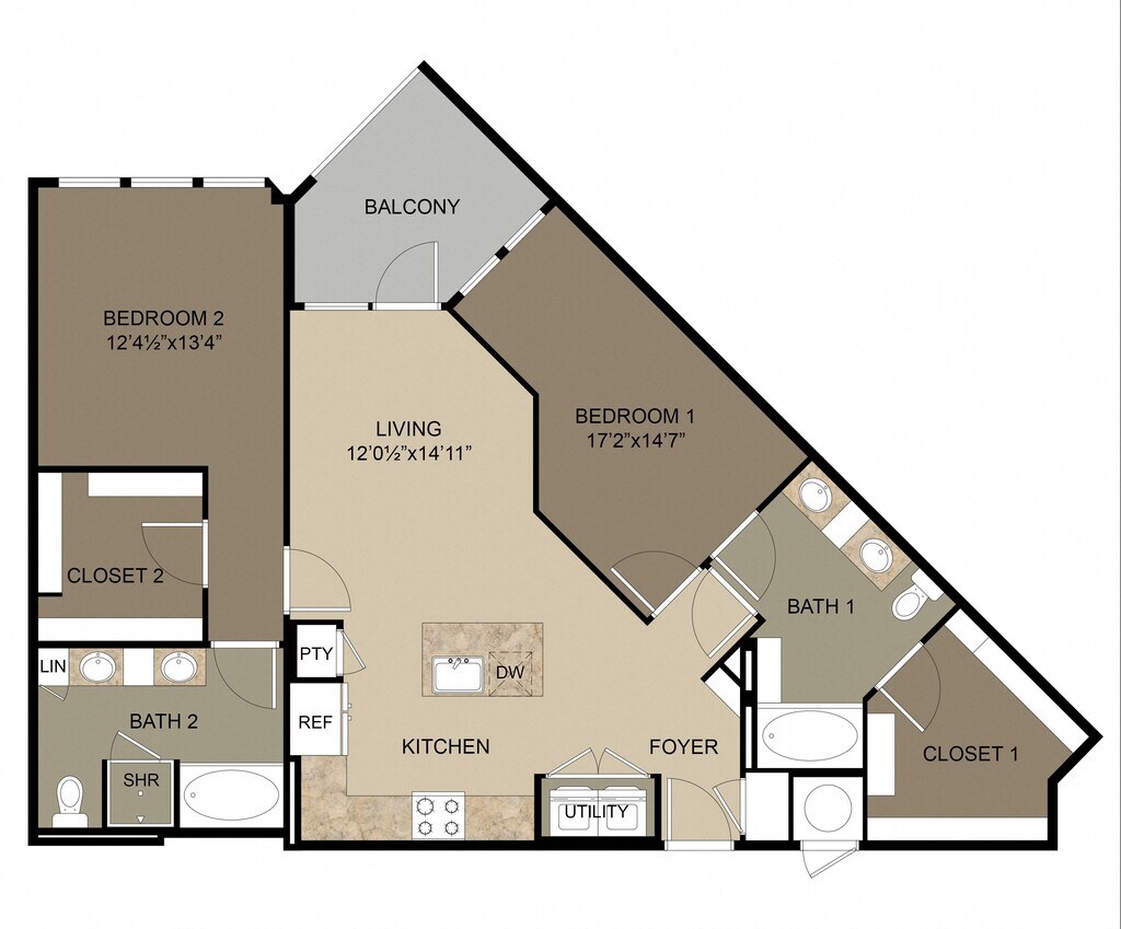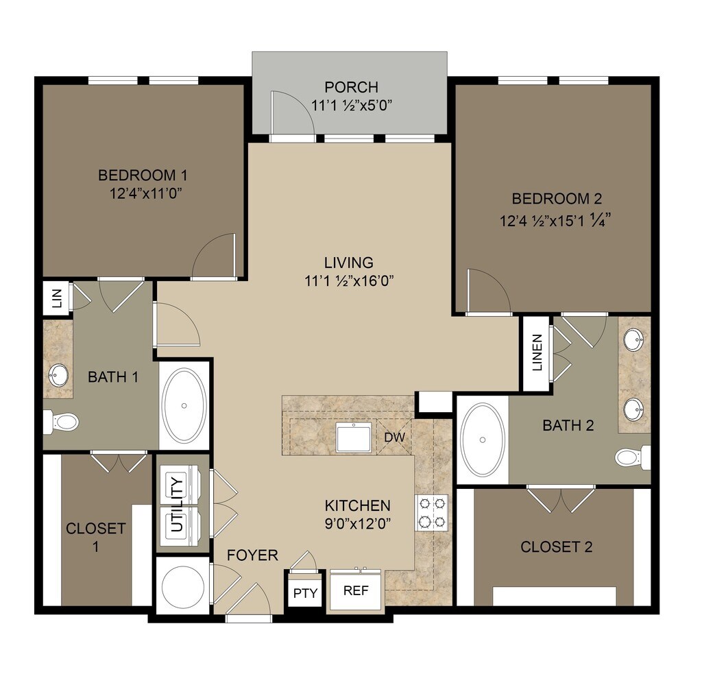 Modelo de apartamento: A2Desde $1,2751 Dormitorio, 1 Baño, 763 sq ftDisponible Ahora![]()
