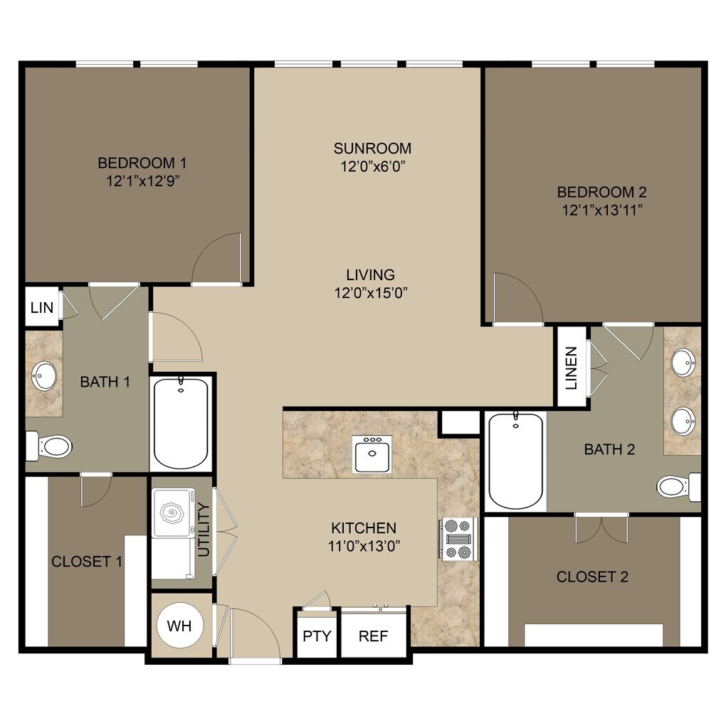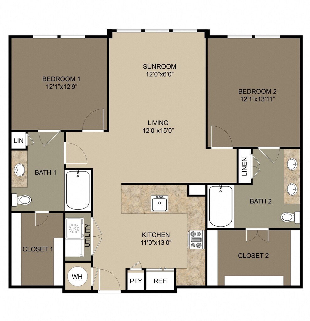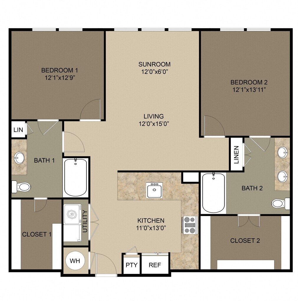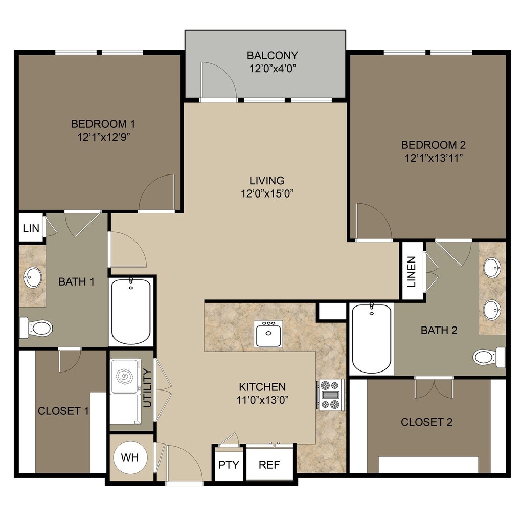 Modelo de apartamento: A2Desde $1,2751 Dormitorio, 1 Baño, 763 sq ftDisponible Ahora![]()