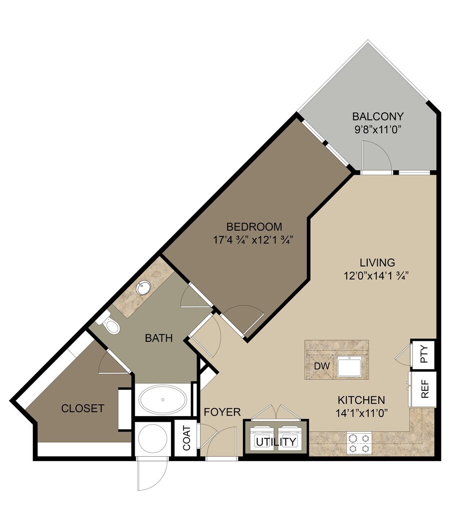1 Dormitorio, 1 Baño, 763 pies²Disponible AhoraGalería del Modelo