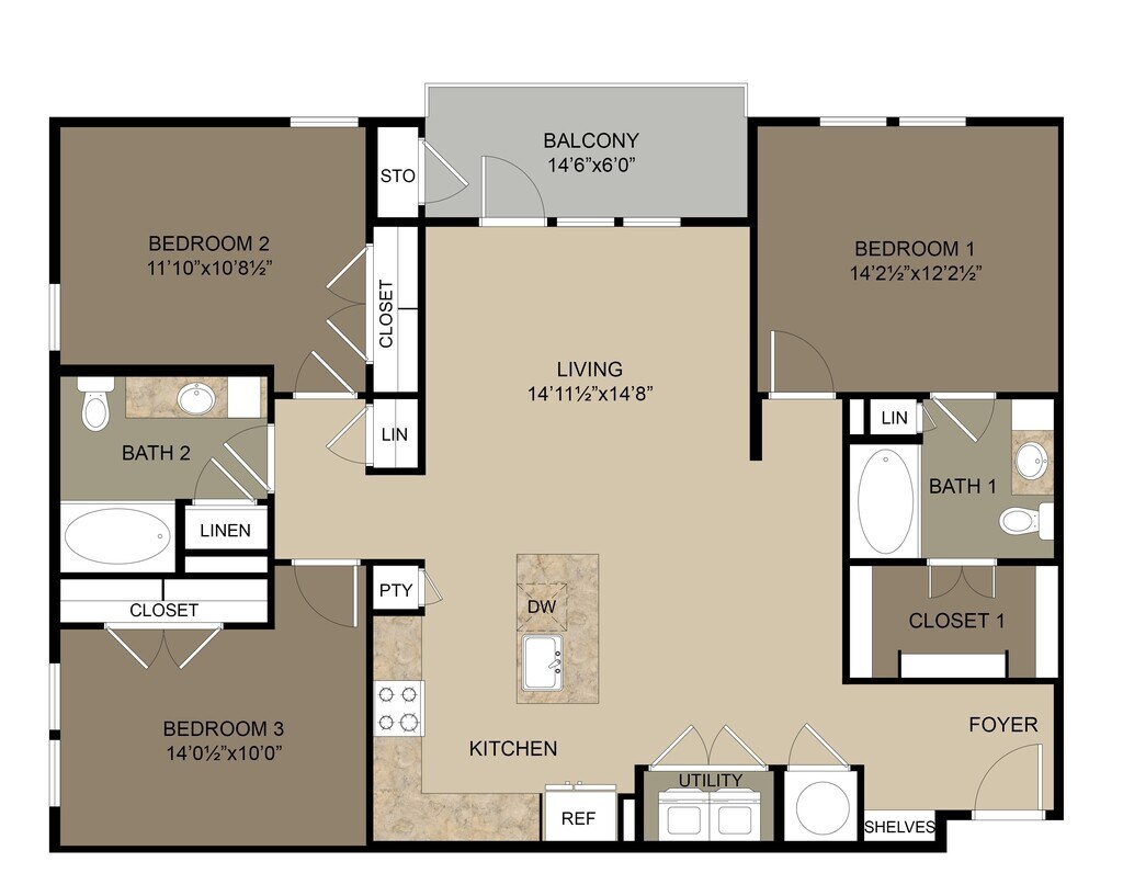 Modelo de apartamento: A6Desde $1,3991 Dormitorio, 1 Baño, 845 sq ftDisponible Ahora![]()