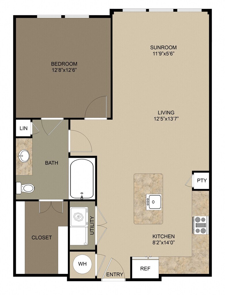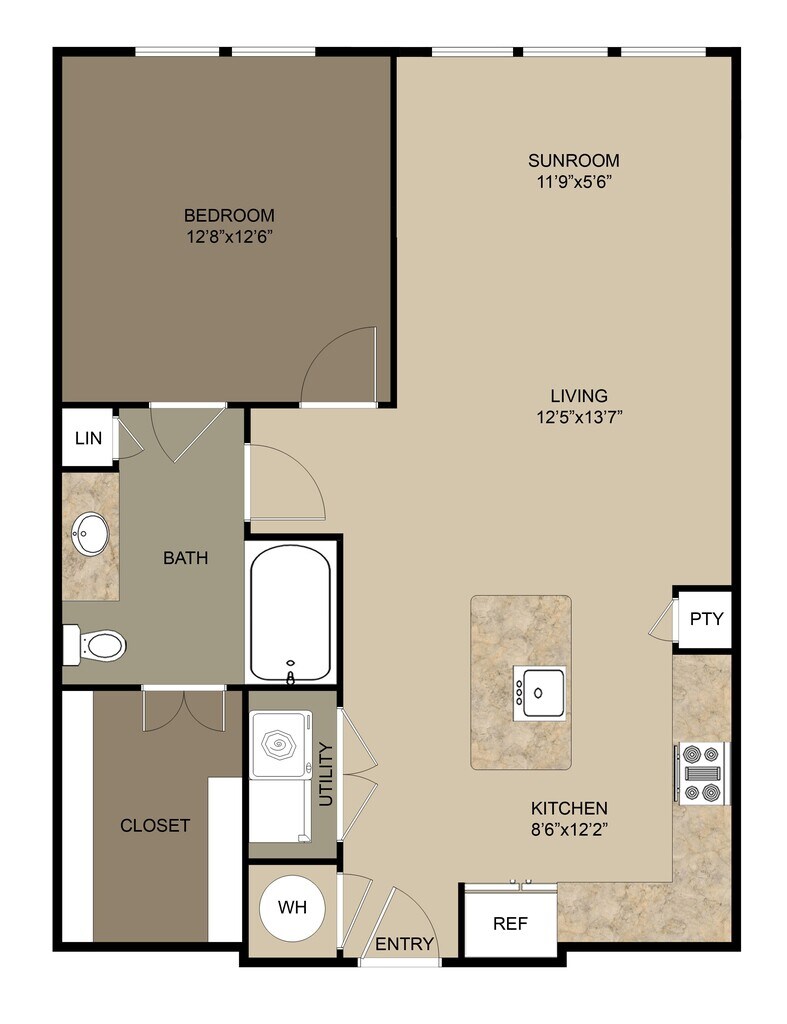 1 Dormitorio, 1 Baño, 845 pies²Disponible AhoraEl más grandeEsta opción tiene las unidades más grandes para este modeloGalería del Modelo