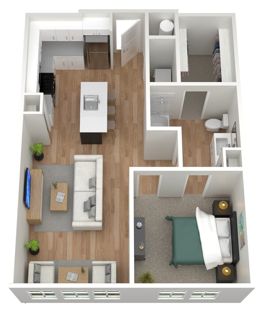 1 Dormitorio, 1 Baño, 831 pies²Disponible AhoraGalería del Modelo
