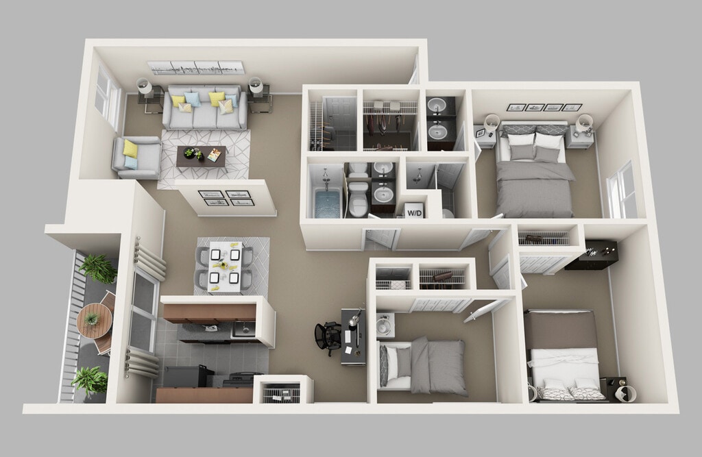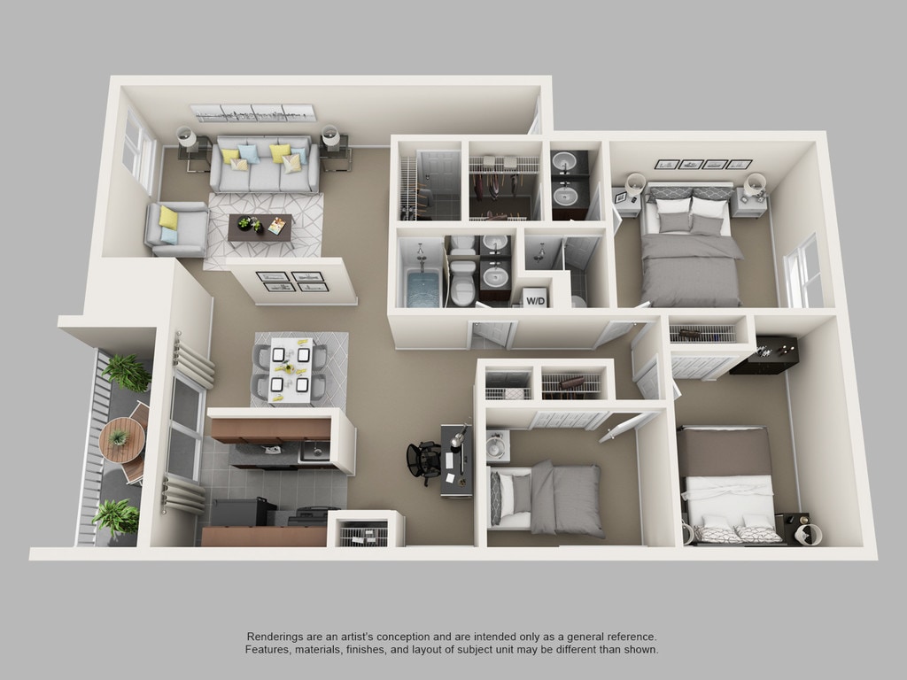 3 Dormitorios, 2 Baños, 1207 pies²Galería del Modelo