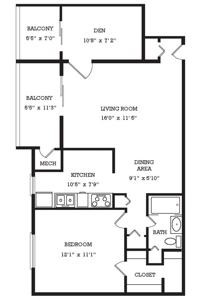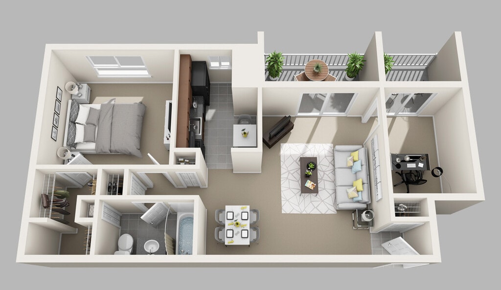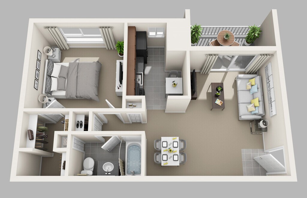 1 Dormitorio, 1 Baño, 832 pies²Galería del Modelo