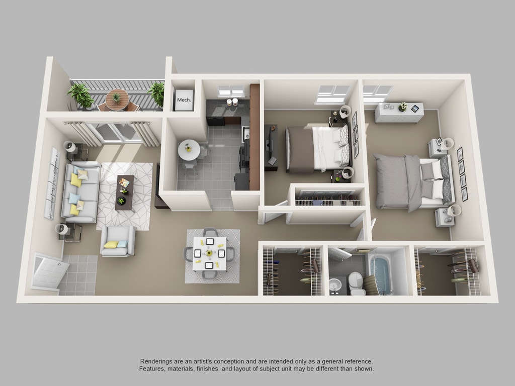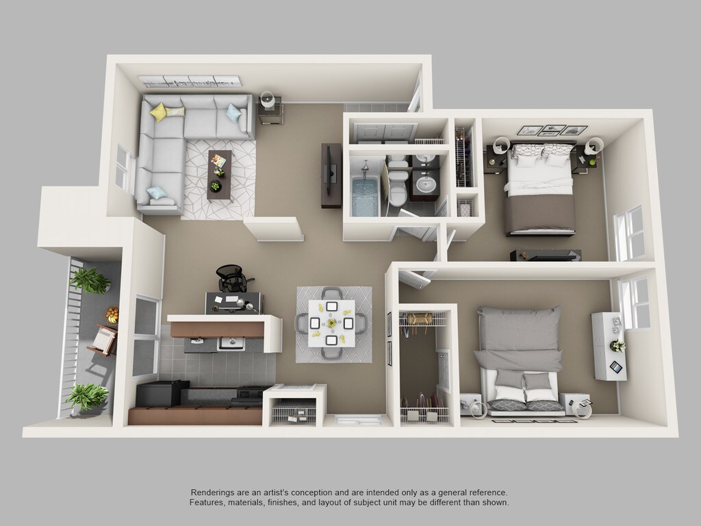 2 Dormitorios, 2 Baños, 932 pies²Disponible January 17, 2026Galería del Modelo
