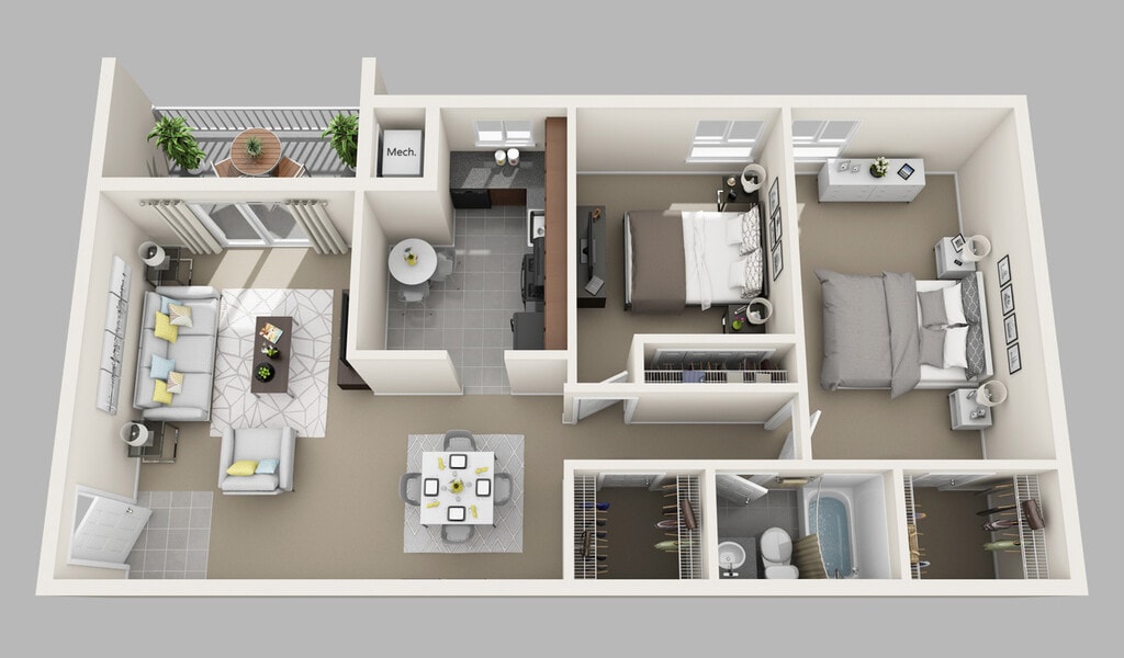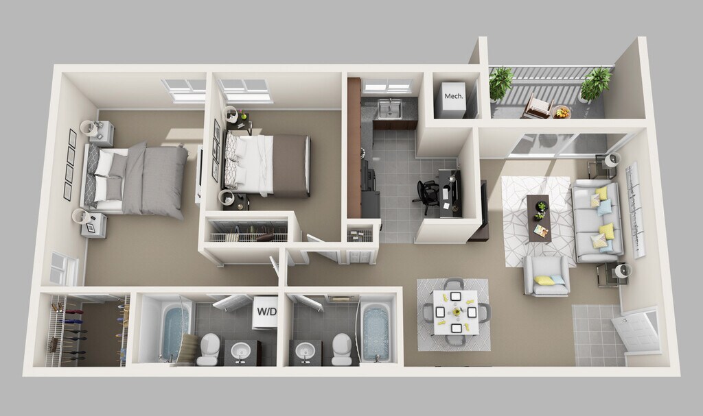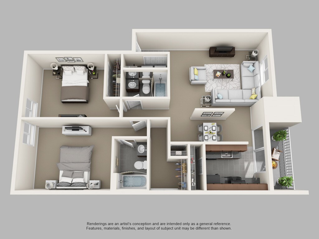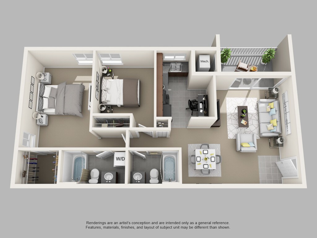 2 Dormitorios, 2 Baños, 1042 pies²Galería del Modelo