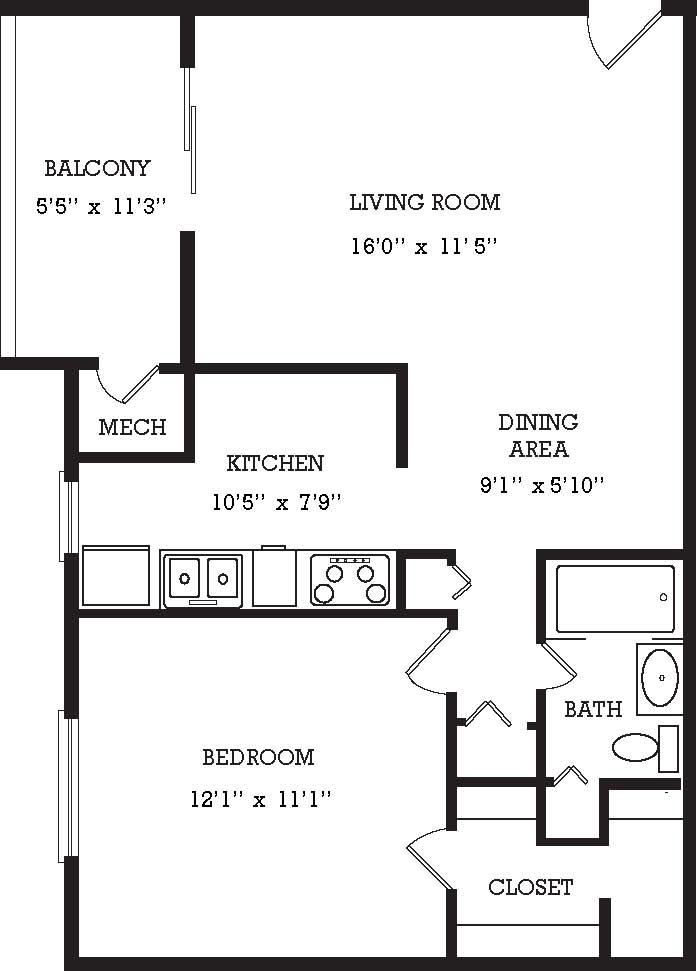 Modelo de apartamento: The Palm - 2 BR/1 BA2 Dormitorios, 1 Baño, 932 sq ftNo Disponible![]()